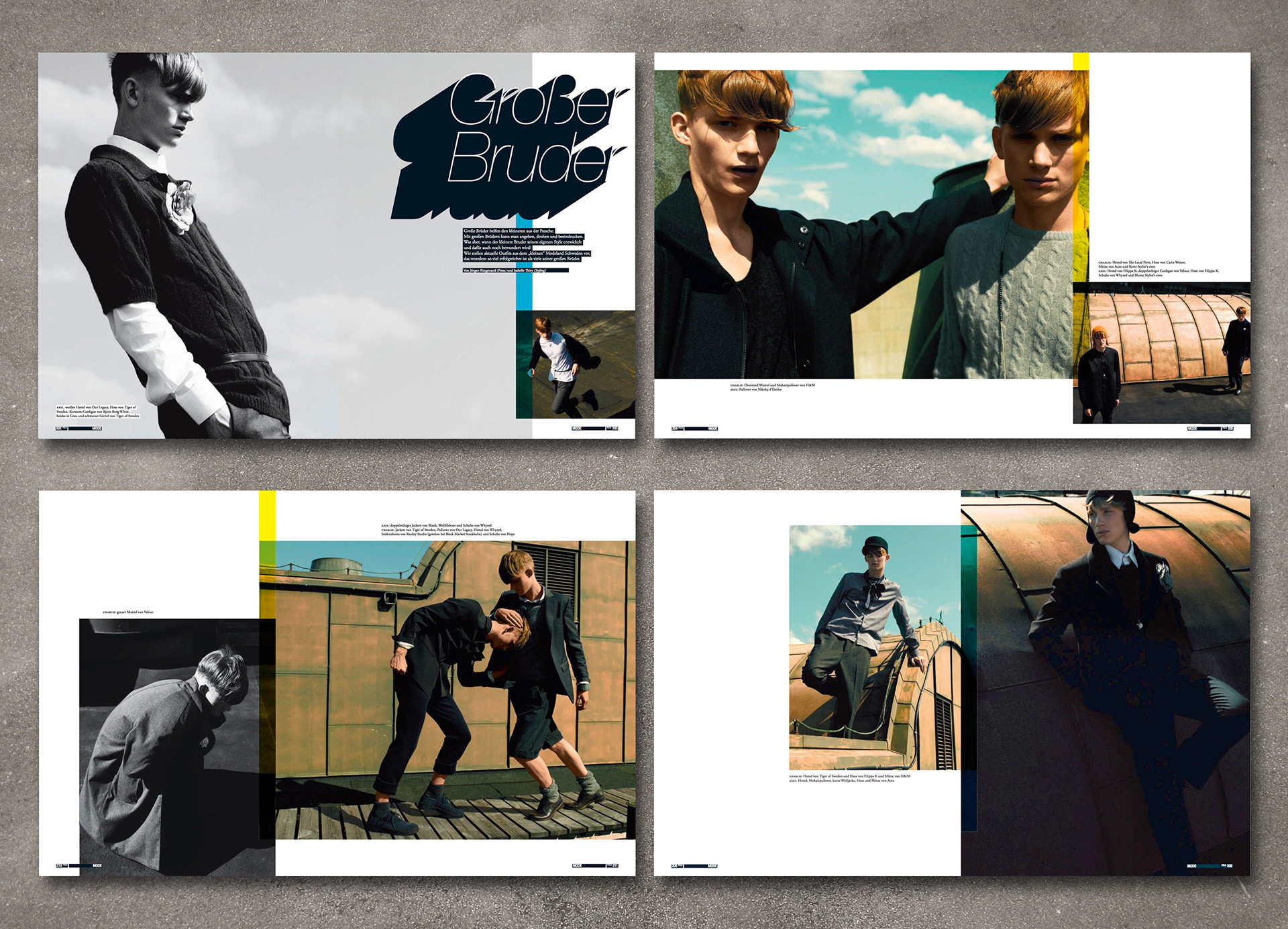 Diverse Layouts für die monothematischen Magazine Feld Hommes